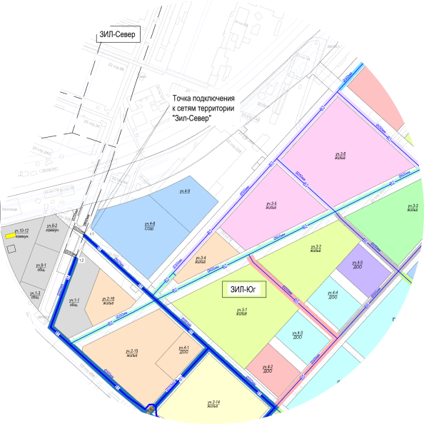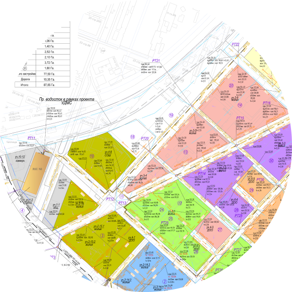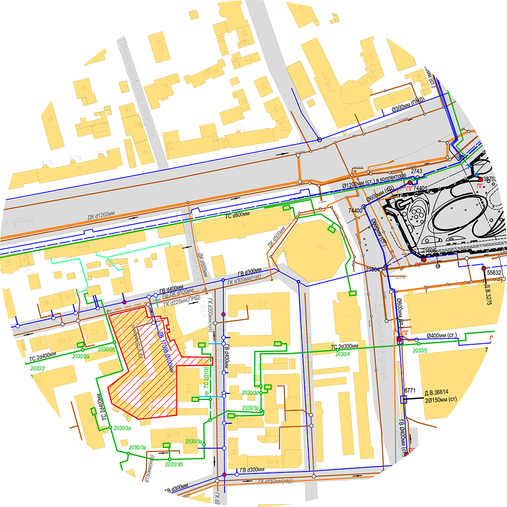 Для удобства Заказчика нами разработан продукт, связанный с существующей строительной практикой: часть работ по прокладке коммуникаций за границами ГПЗУ проводят ресурсоснабжающие организации своими силами, при этом сроки реализации проектных решений не всегда совпадают с планами Заказчика. В рамках этого продукта мы в интересах Заказчика реализуем работы по раскладке коммуникаций ресурсоснабжающих компаний на сводном плане сетей с последующей передачей Заказчиком в ресурсоснабжающие компании, в качестве исходных данных, «коридоров» для прокладки коммуникаций. Поскольку предлагаемые решения технически грамотные и продуманные, ресурсосберегающие организации берут их за основу. А поскольку они разработаны нами в комплексе, это позволяет системно решить увязку сводного плана сетей и избежать корректировок проектных решений с их повторным переутверждением в Экспертизе, что экономит деньги, сокращает сроки проектирования, а значит и строительства в целом.