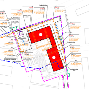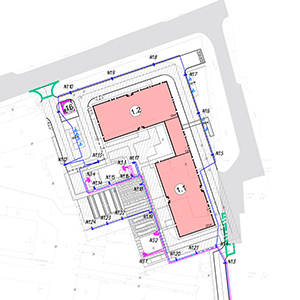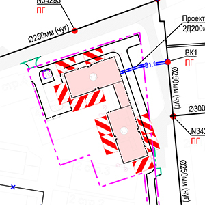 Проектом предусматривается инженерное обеспечение двух жилых корпусов (1.1, 1.2), со встроенно-пристроенными помещениями общественного назначения на первых этажах зданий и подземной частью.